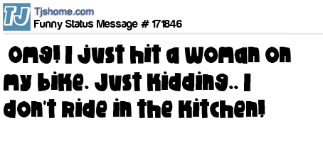 X says Omg! I just hit a woman on my bike. Just kidding.. I don't ride in the kitchen!