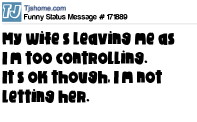 X My wife’s leaving me as I’m too controlling. It’s ok though, I’m not letting her.