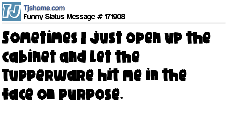 X says Sometimes I just open up the cabinet and let the Tupperware hit me in the face on purpose.