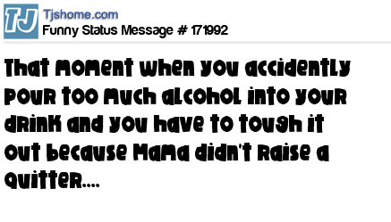 X says That moment when you accidently pour too much alcohol into your drink and you have to tough it out because Mama didn't raise a quitter....