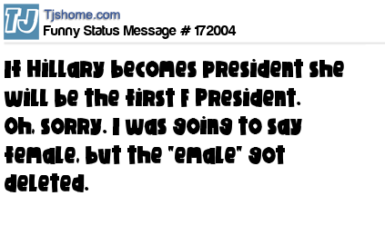 - # 169660 Hillary Clinton should be the first f-president. I was going to say female but somebody deleted the 'emale'.