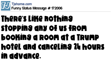X says There's like nothing stopping any of us from booking a room at a Trump hotel and canceling 24 hours in advance.