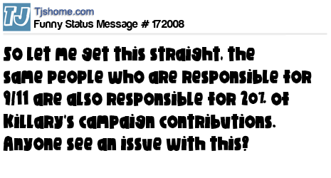 X says So let me get this straight, the same people who are responsible for 9/11 are also responsible for 20% of Killary's campaign contributions. Anyone see an issue with this?