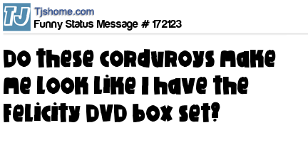 X says Do these corduroys make me look like I have the Felicity DVD box set?