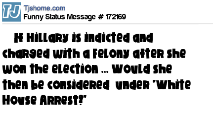 - # 168562 Hillary should be indicted. Trump will do something where he should be indicted. We're screwed. Eat Oreos.