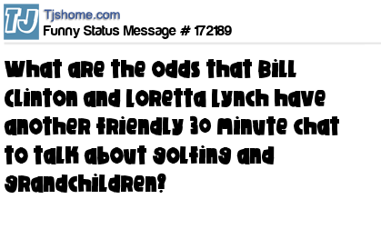 X What are the odds that Bill Clinton and Loretta Lynch have another friendly 30 minute chat to talk about golfing and grandchildren?