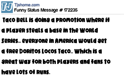 X says Taco Bell is doing a promotion where if a player steals a base in the World Series,,, everyone in America would get a free Doritos Locos Taco.. Which is a great way for both players and fans to have lots of runs.
