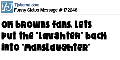 X says Ok browns fans, lets put the "laughter" back into "manslaughter"