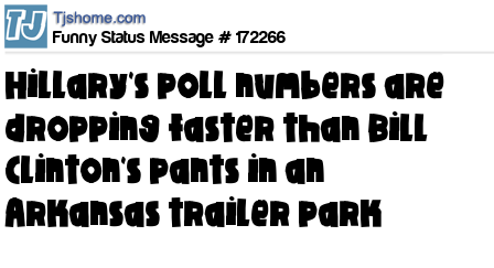 X says Hillary's poll numbers are dropping faster than Bill Clinton's pants in an Arkansas trailer park