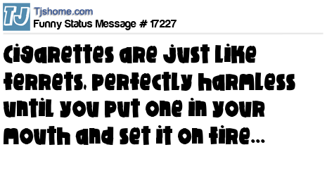 X is cigarettes are just like ferrets, perfectly harmless until you put one in your mouth and set it on fire...