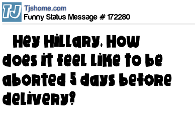 X says Hey Hillary, How does it feel like to be aborted 5 days before delivery?