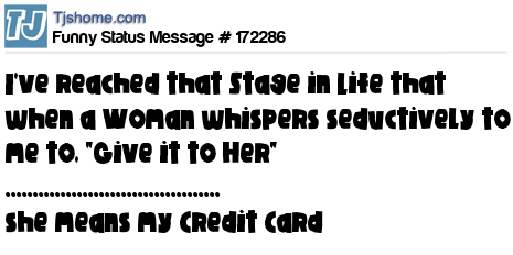 X says I've reached that Stage in Life that when a Woman whispers seductively to me to, "Give it to Her" ....................................... she means my Credit Card