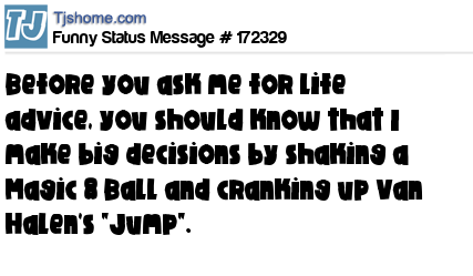 X says Before you ask me for life advice, you should know that I make big decisions by shaking a Magic 8 Ball and cranking up Van Halen's "Jump".