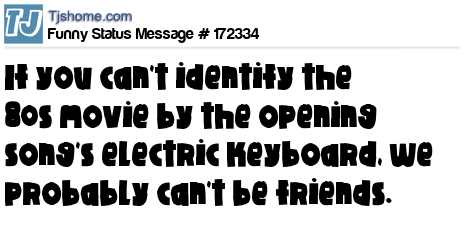 X says If you can't identify the 80s movie by the opening song's electric keyboard, we probably can't be friends.