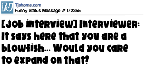 X says [job interview] Interviewer: It says here that you are a blowfish... Would you care to expand on that?