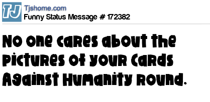 X says No one cares about the pictures of your Cards Against Humanity round.