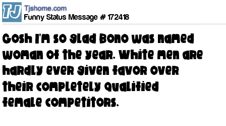 X says Gosh I'm so glad Bono was named woman of the year. White men are hardly ever given favor over their completely qualified female competitors.