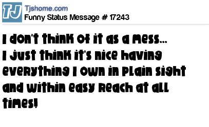 X says I don't think of it as a mess... I just think it's nice having everything I own in plain sight and within easy reach at all times!