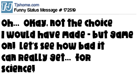 X says Oh... Okay, not the choice I would have made - but game on! Let's see how bad it can really get... for science!