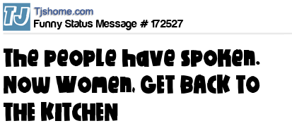 X says The people have spoken. Now Women, GET BACK TO THE KITCHEN