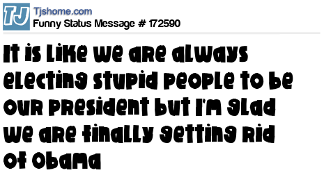 X says It is like we are always electing stupid people to be our president but I'm glad we are finally getting rid of Obama