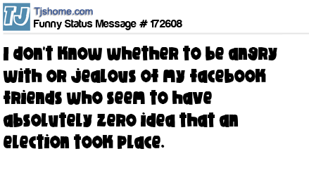 X I don't know whether to be angry with or jealous of my facebook friends who seem to have absolutely zero idea that an election took place.