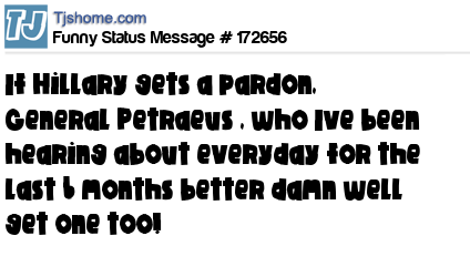 X says If Hillary gets a pardon, General Petraeus , who Ive been hearing about everyday for the last 6 months better damn well get one too!