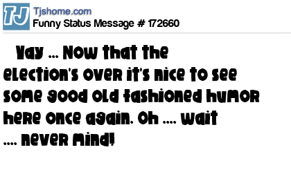 X says Yay ... Now that the election's over it's nice to see some good old fashioned humor here once again. Oh .... wait .... never mind!
