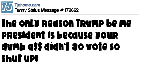 X says The only reason Trump be me president is because your dumb a$$ didn't go vote so shut up!