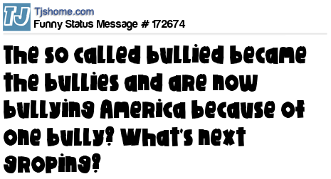 X says The so called bullied became the bullies and are now bullying America because of one bully? What's next groping?
