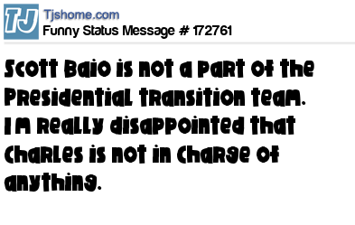 X says Scott Baio is not a part of the Presidential transition team. I’m really disappointed that Charles is not in Charge of anything.