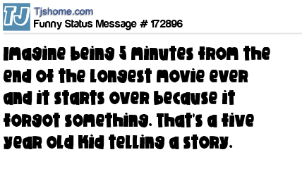 - # 163763 Imagine being 5 minutes from the end of the longest movie ever & it starts over because it forgot something. That's my kid telling a story.