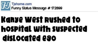 - # 172904 Kanye West is said to be recovering well in hospital after an 8 hour operation to remove his head from his ass.