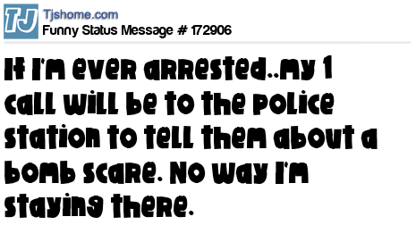 - # 73102 If I ever get arrested, my one phone call will be to the police station to do a bomb scare. I'm not spending the night there