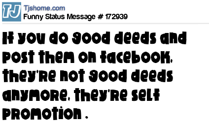 X says If you do good deeds and post them on facebook, they're not good deeds anymore, they're self promotion .