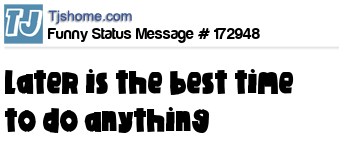 - # 80061 I'm not addicted to Facebook. I only time I update my status is when I have time: lunch time, break time, off time, this time, that time, any time, all the time