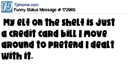 X says My elf on the shelf is just a credit card bill I move around to pretend I dealt with it.