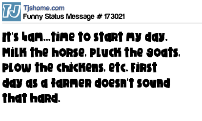 X says It's 4am...time to start my day. Milk the horse, pluck the goats, plow the chickens, etc. First day as a farmer doesn't sound that hard.