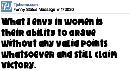 X says What I envy in women is their ability to argue without any valid points whatsoever and still claim victory.