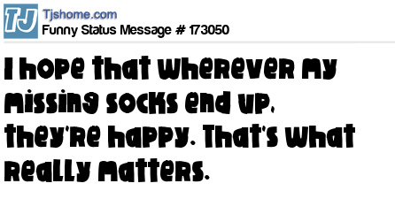 X says I hope that wherever my missing socks end up, they're happy. That's what really matters.