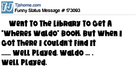 X says Went To The Library To Get A "Wheres Waldo" Book, But When I Got There I Couldn't Find It ...... Well Played, Waldo ... . Well Played.