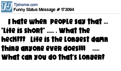 - # 9233 hates when people say "life is short". What the hell??? Life is the longest damn thing anyone ever does!!! What can you do thats longer?