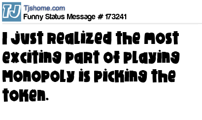 X I just realized the most exciting part of playing Monopoly is picking the token.