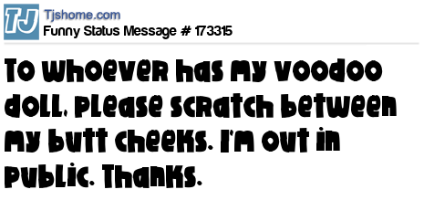 - # 118022 whoever has my voodoo doll, please scratch between my butt cheeks..I'm in public