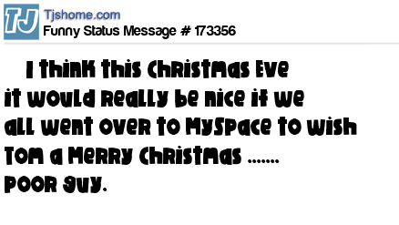 X says I think this Christmas Eve it would really be nice if we all went over to MySpace to wish Tom a Merry Christmas ....... poor guy.