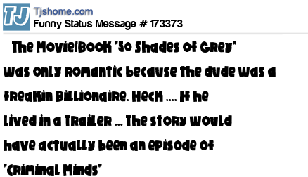 X says The Movie/Book "50 Shades of Grey" was only romantic because the dude was a freakin Billionaire. Heck .... If he lived in a Trailer ... The story would have actually been an episode of "Criminal Minds"