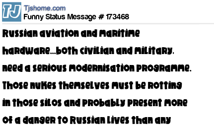 X says Russian aviation and maritime hardware...both civilian and military, need a serious modernisation programme. Those nukes themselves must be rotting in those silos and probably present more of a danger to Russian lives than any enemy, real or imagined.