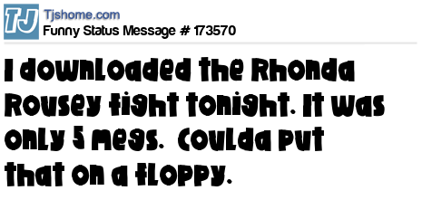 X says I downloaded the Rhonda Rousey fight tonight. It was only 5 megs. Coulda put that on a floppy.