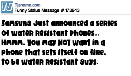 X says Samsung just announced a series of water resistant phones... Hmmm,, You may NOT want in a phone that sets itself on fire,, to be water resistant guys.