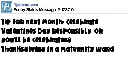 X says Tip for next month: Celebrate Valentines Day responsibly, or you'll be celebrating Thanksgiving in a maternity ward